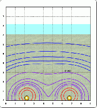 Figure 171: 2 drains espacés à 15cm de distance. Notez que le flux est éloigné du centre et concentré près des parois.